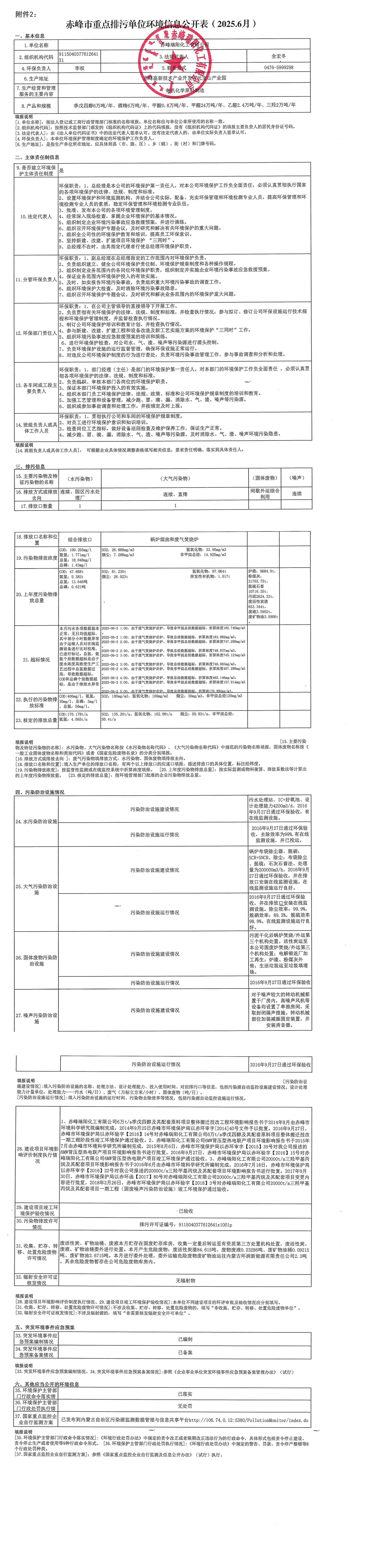 赤峰市重點排污單位環(huán)境信息公開表【2025.06】